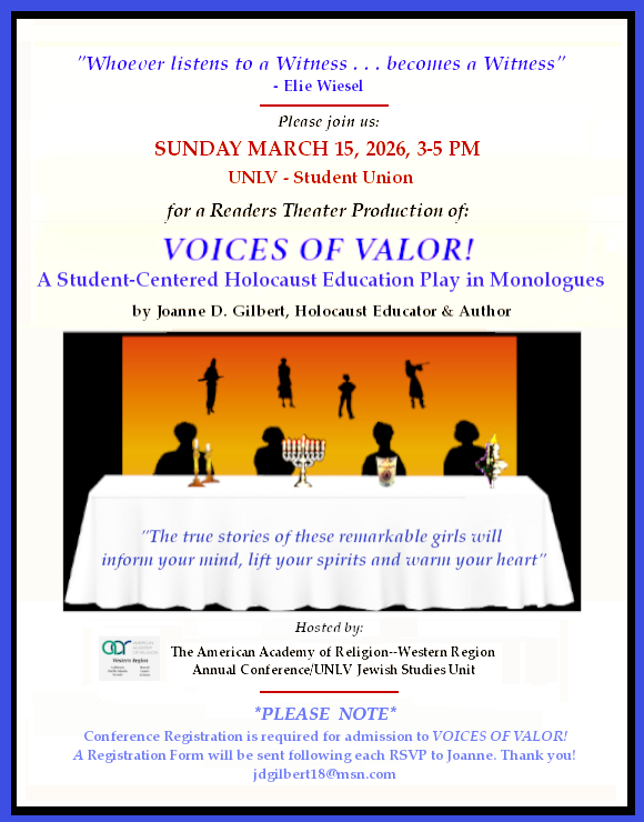 Joanne D. Gilbert, M. Ed, is an award-winning Author, popular Public-Speaker, sought-after Holocaust Educator, and Playwright. As a post-WWII Baby Boomer, Joanne grew up in the predominantly Jewish suburb of Oak Park, Michigan, where many of the residents were Holocaust Survivors who had recently immigrated from war-torn Europe. Their powerful and poignant stories, along with those of her beloved Grandmother, Millie Wineman Ron, inspired Joanne to embark on a journey to find and celebrate women who had successfully defied the Nazis.